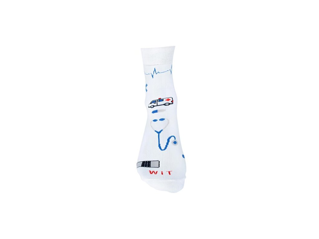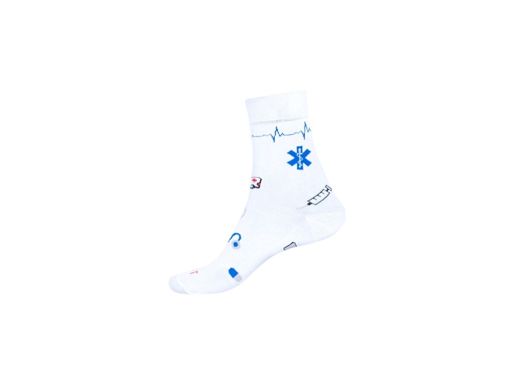 Ponožky "Zdravotníctvo" sa pýši originálnym zdravotníckym vzorom. Sú vyrobené z kvalitného materiálu (80% bavlna, 15% polyamid, 5% elastan). Ponúkajú maximálne pohodlie vďaka neškrtiacemu lemu, perfektnému odvodu potu a šetrnosti k pokožke, čo ich robí ideálnou voľbou pre celodenné nosenie. Tieto štýlové ponožky sú výsledkom poctivej práce rodinnej firmy v Českej republike, ktorá zaručuje vysokú kvalitu spracovania.