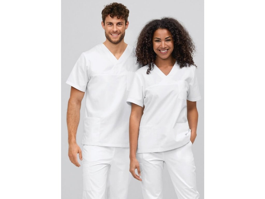 Unisex blúza je vhodná na všetky pracoviská, kde chcete zladit Váš pracovný tím. Túto uniformu máme v mnohých farebných odtieňoch, takže môžete farbu blúzy prispôsobiť svojej ordinácii alebo klinike. Oceníte PRANIE AŽ NA 95, vhodná do sušičky. Blúza má veľmi obľúbený klasický strih, výstrih do V a tri predné vrecká, jedno je náprsné.