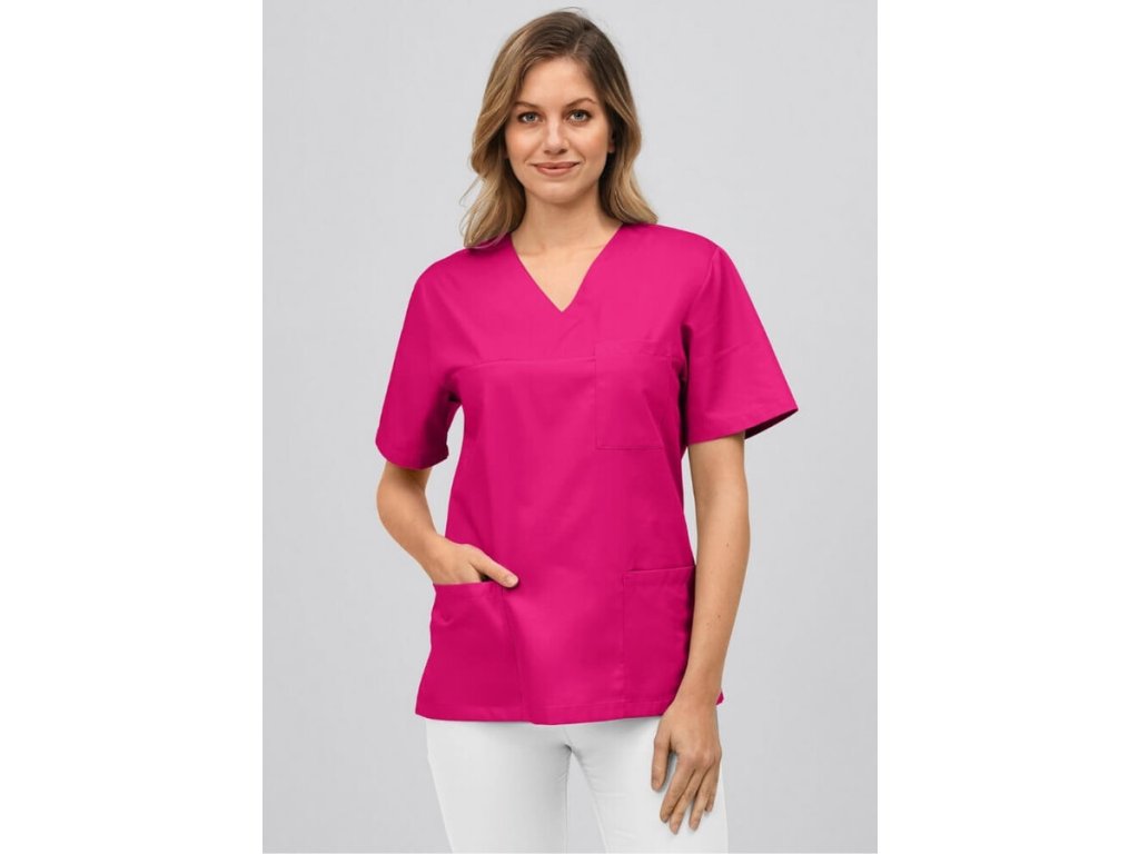 Unisex blúza je vhodná na všetky pracoviská, kde chcete zladit Váš pracovný tím. Túto uniformu máme v mnohých farebných odtieňoch, takže môžete farbu blúzy prispôsobiť svojej ordinácii alebo klinike. Oceníte PRANIE AŽ NA 95, vhodná do sušičky. Blúza má veľmi obľúbený klasický strih, výstrih do V a tri predné vrecká, jedno je náprsné.