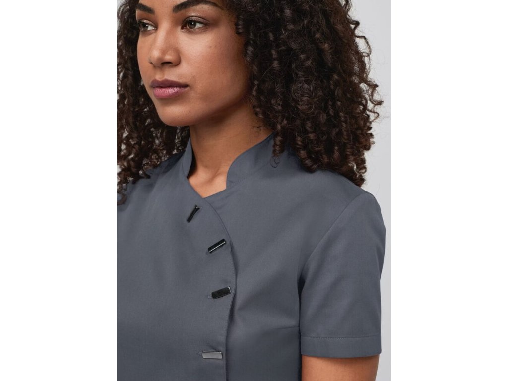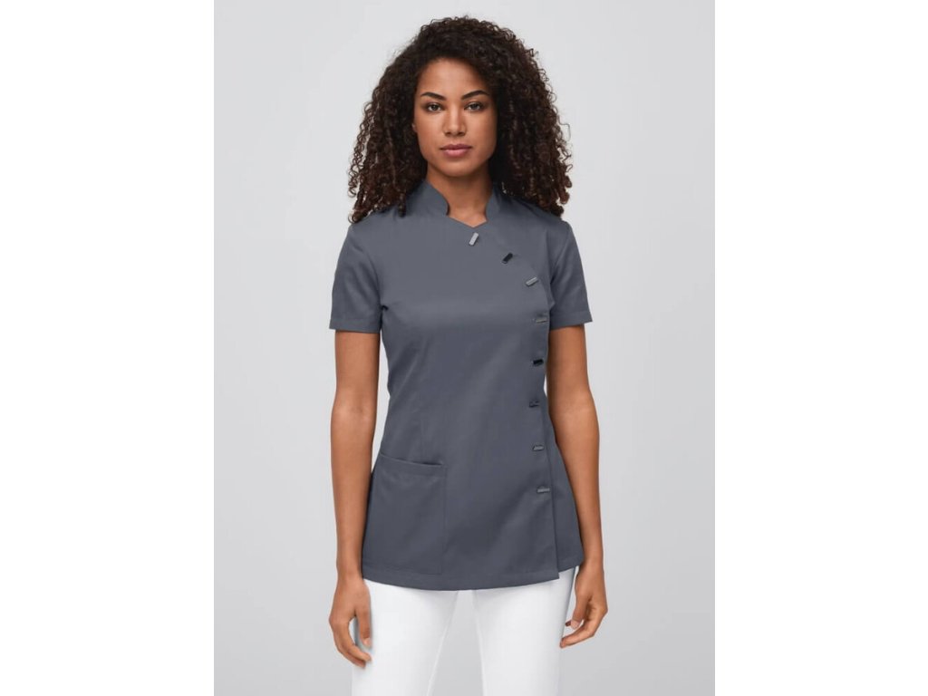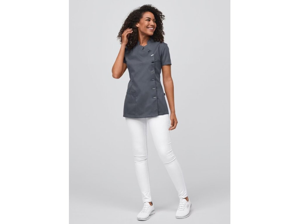 Blúza ja vyrobená z kvalitných materiálov bude sa cítiť príjemne a pohodlne po celú pracovnú dobu. Hodí sa predovšetkým na recepciu kliník, do ordinácií a lekární, svoje zákazníčky si nájde aj v hoteloch, wellness centrách, ale aj v oblasti kozmetiky, fyzioterapie a v kaderníctvach. Je to vkusné oblečenie na vysokej úrovni.