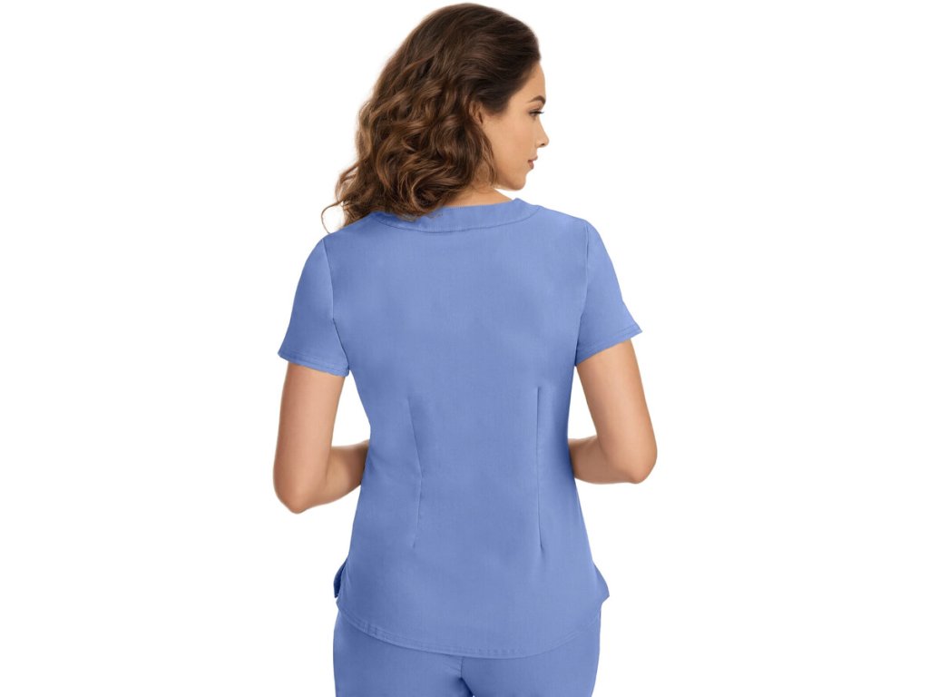 Zaujímavo a moderne riešená dámska blúza, ponúka profesionalitu zdravotníka na prvý pohľad. Oslní Vás jej vzhľad, ale aj praktickosť a vlastnosti, ktoré Vám zaistia pohodlie aj pri náročnej dvanásťhodinovej smene v nemocnici. Príjemné a hebké materiály potešia Vašu pokožku, elasticita podporí Váš pohyb, priedušnosť zaistí celodenný komfort a príjemný pocit a v neposlednom rade obľúbený ľahko priliehavý strih a premyslené spracovanie sa postará o lichotivú postavu. Prebuďte dôveru a prekvapte svojich pacientov štýlovou uniformou a profesionálnym vzhľadom modernej zdravotníčky.