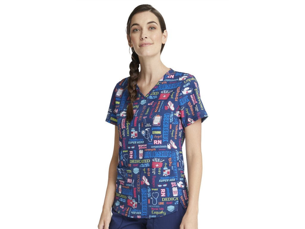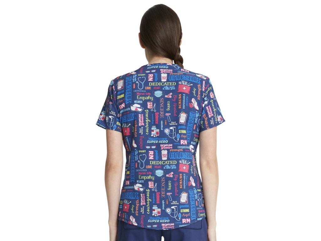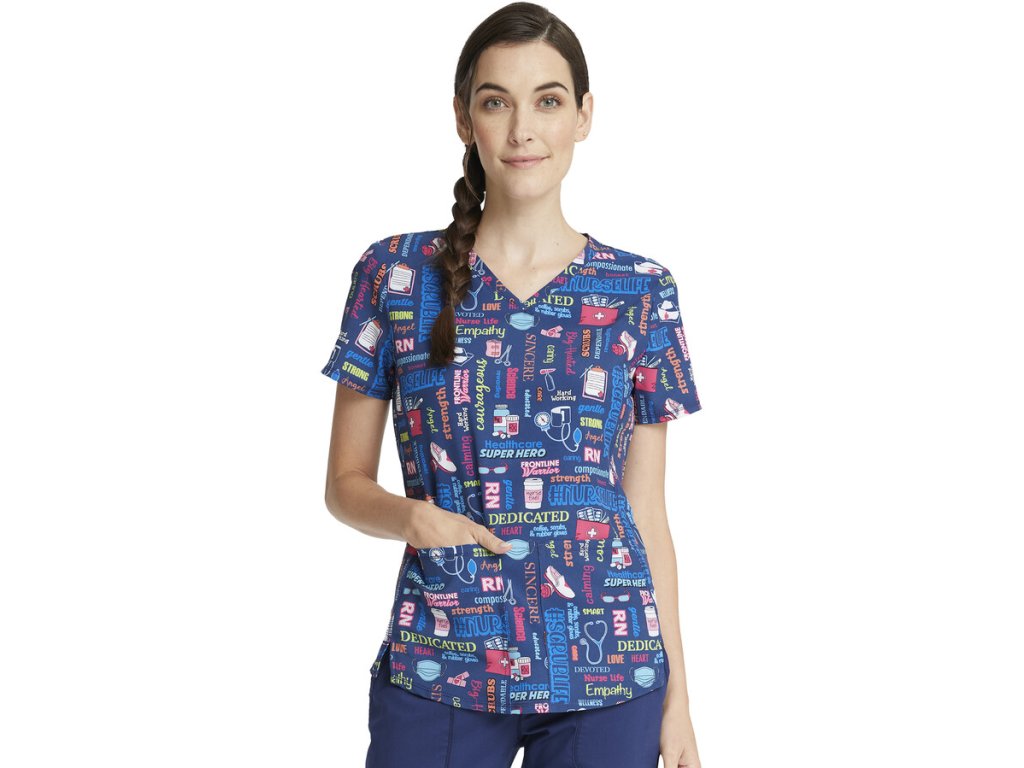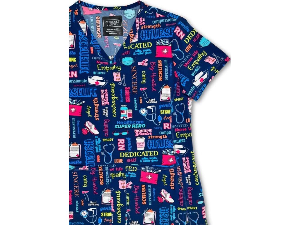 Dámska blúza značky Cherokee ponúka pohodlie a tematickú potlač pre zdravotníkov. Kvalitný materiál sa postará o náležitý komfort, oceníte praktické predné vrecká a rozparky po bokoch pre lepší pohyb. Vďaka modernému strihu sa blúza radí medzi najobľúbenejšie. Prekvapte svojich pacientov štýlom a vneste do ambulancie či nemocnice veselšiu náladu. #nurselife, #scrubslife, #angel