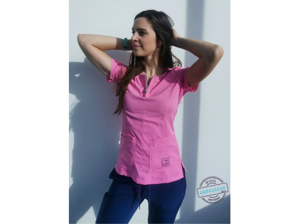 Zdravotnícka blúza značky KOI športového slim fit strihu je veľmi zaujímavá vďaka premysleným detailom, krásnym farbám a použitému materiálu. Látka blúzy je priedušná a umožňuje lepšie odvádzanie vlhkosti. Nie je náročnú na údržbu a je príjemná na nosenie. Zdravotnícka blúza drží tvar a farby aj po mnohonásobnom vypraní, žehliť ju nemusíte. S týmto topom nemôžete nič pokaziť, vyskúšajte!