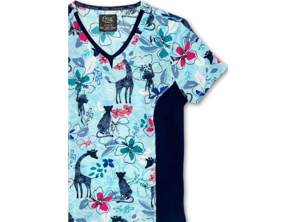 Dámska blúza značky Cherokee je vďaka obľúbenému modernému strihu vhodná pre všetky typy postáv. Blúza má dve predné vrecká, všité bočné elastické pásy a rozparky na bokoch pre voľnejší pohyb. Zvolený funkčný materiál sa postará o Vaše pohodlie počas dlhých pracovných zmien a milá potlač zvieratiek zaistí veselšiu náladu Vašim malým pacientom a určite aj kolegom.