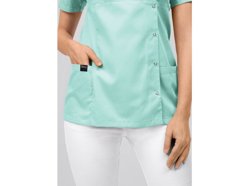 Vaša pracovná uniforma na úrovni ! Dámska vypasovaná zdravotnícka blúza je od kvalitnej značky 7days. Ľahko predĺžený strih, asymetrické zapínanie na cvoky a deliaci šev pod hrudníkom pekne tvaruje postavu. Blúza je vhodná dokonca aj do sušičky.