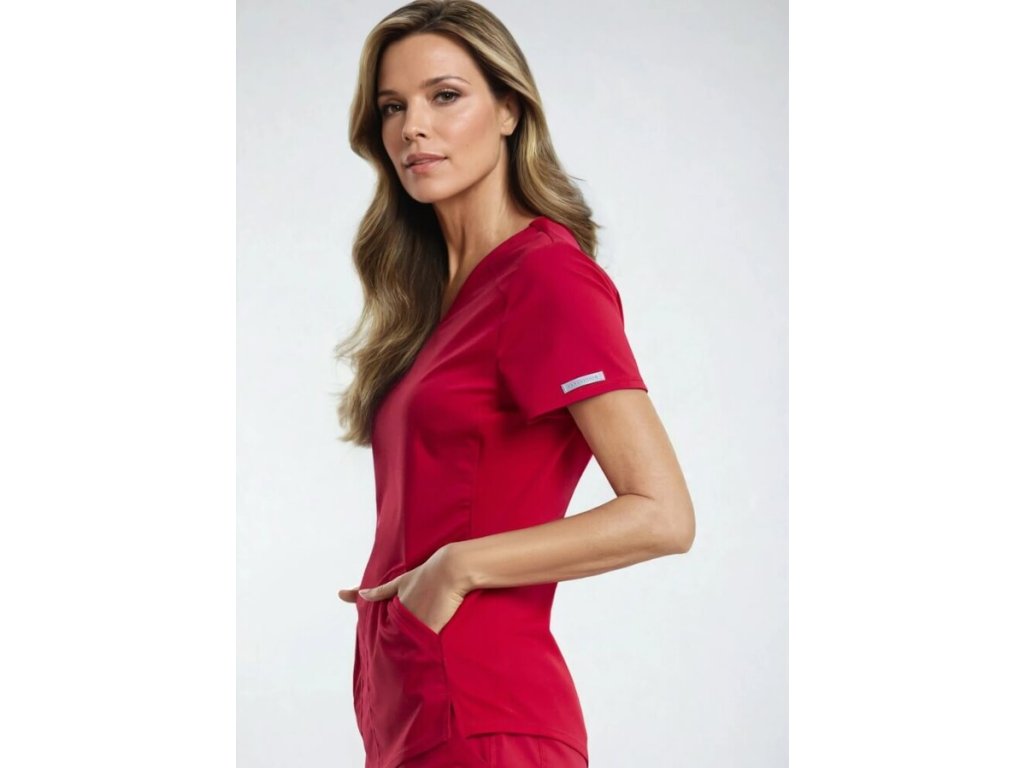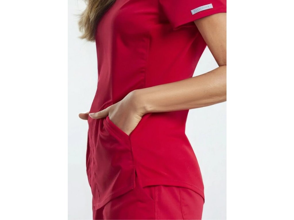 Táto červená zdravotnícka blúza z kolekcie Cherokee Revolution je stvorená pre ženy, ktoré chcú vyzerať štýlovo, cítiť sa komfortne a zároveň pôsobiť sebaisto počas celého dňa. Vďaka modernému strihu „Active Styling“ dokonale kopíruje ženskú siluetu a zároveň poskytuje neobmedzený pohyb.