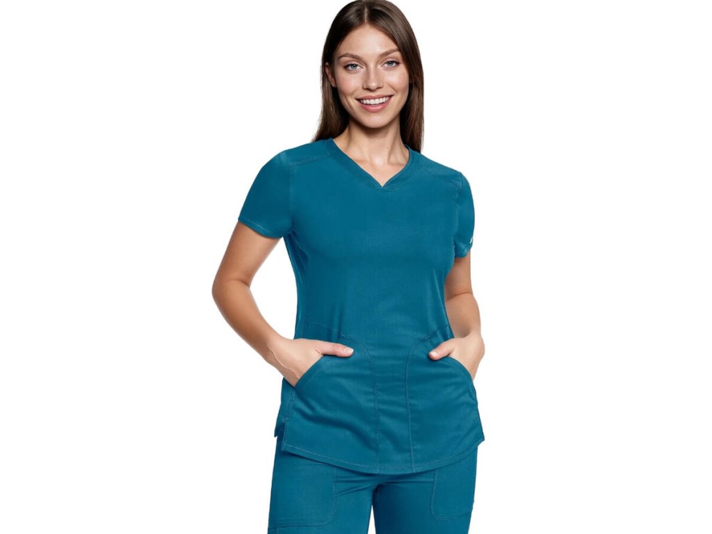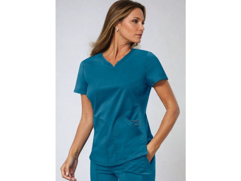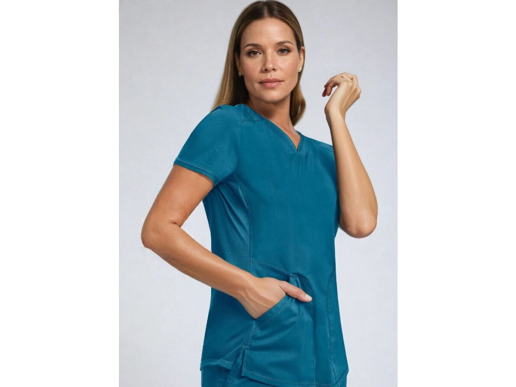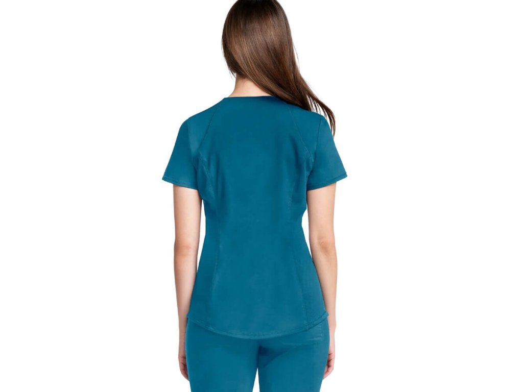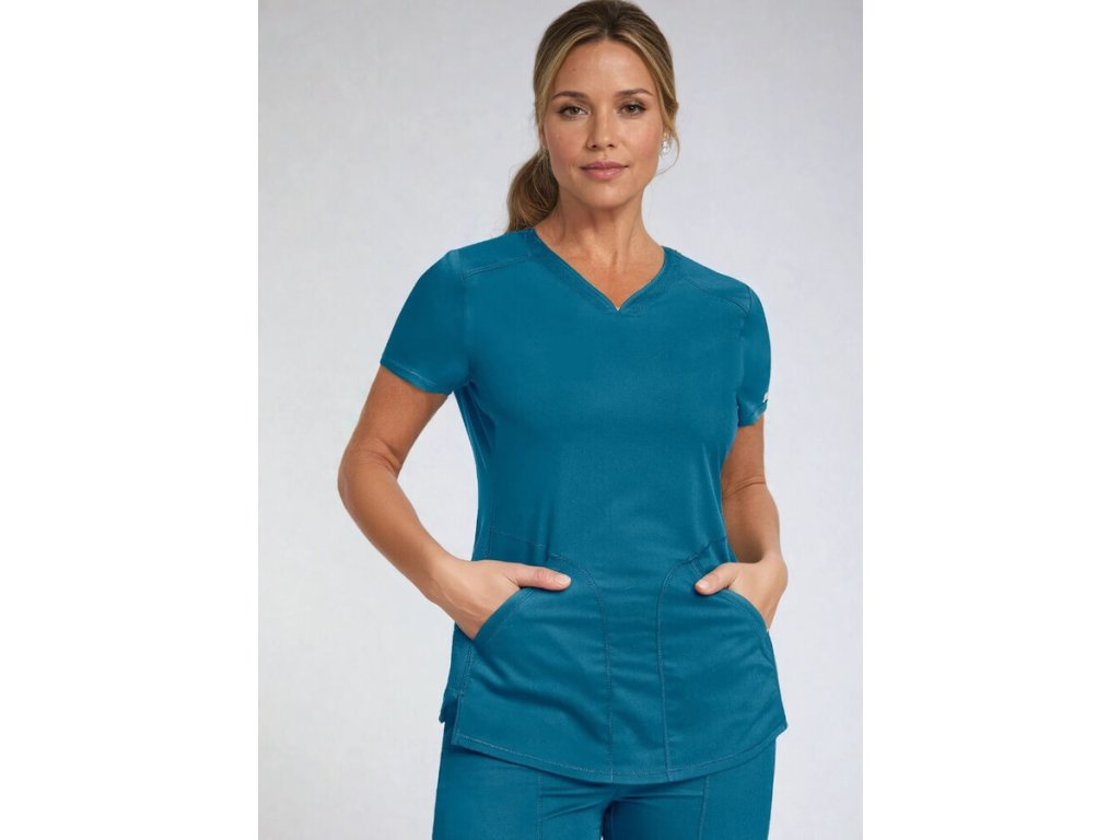 Táto karibská modrá zdravotnícka blúza z kolekcie Cherokee Revolution je stvorená pre ženy, ktoré chcú vyzerať štýlovo, cítiť sa komfortne a zároveň pôsobiť sebaisto počas celého dňa. Vďaka modernému strihu „Active Styling“ dokonale kopíruje ženskú siluetu a zároveň poskytuje neobmedzený pohyb.