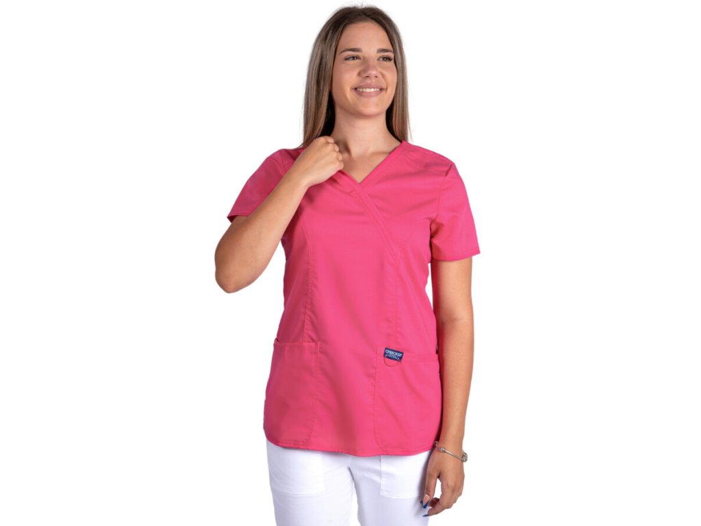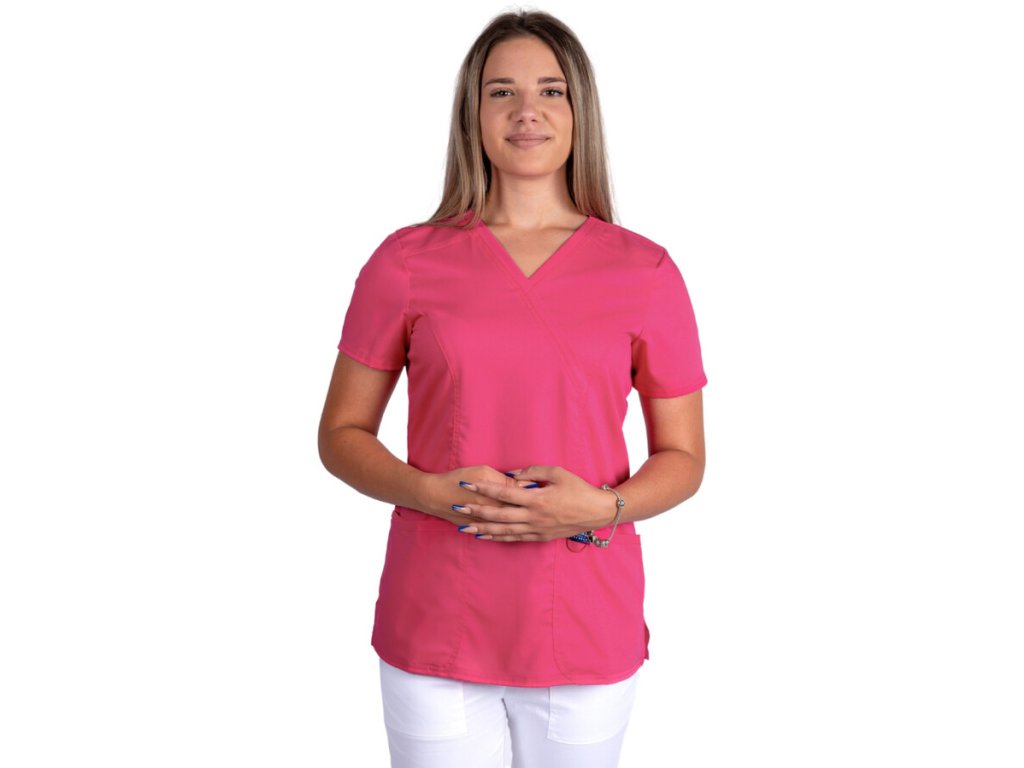 Perte na 60–70 °C, odporúčame sušiť voľne alebo pri nízkej teplote. Blúza je odolná voči pokrčeniu a zachováva si žiarivú ružovú farbu. Či už pracujete v nemocnici, salóne krásy alebo veterinárnej ambulancii – s touto blúzkou budete vždy vyzerať upravene a cítiť sa skvele.