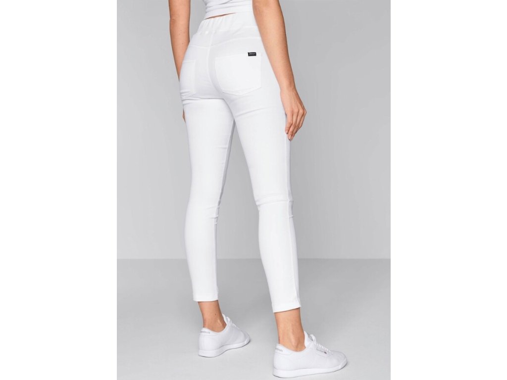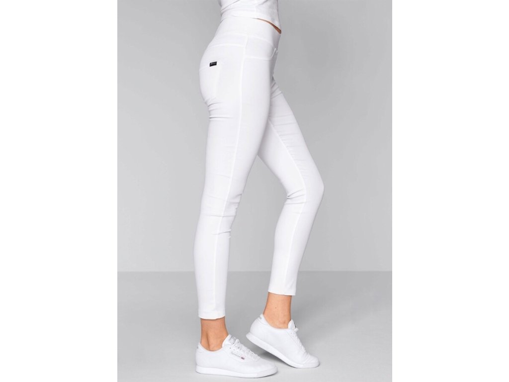 Tieto úzke biele nohavice budete milovať. Sú to naše najpredávanejšie nohavice, teraz vylepšené o pridaný podiel bavlny a pranie až na 60°. Vďaka pružnému stretch materiálu sa prispôsobia každej postave, máme ich v ponuke od veľkosti XS až po 5XL. Široký elastický pás zaručuje, že sa budete cítiť po celú Vašu smenu pohodlne. Úzky strih a 7/8 dĺžka robia peknú postavu. Nohavice sú vhodné pre všetky ženy, ktoré pracujú ve zdravotníctve a chcú sa cítiť a vyzerať skvele.