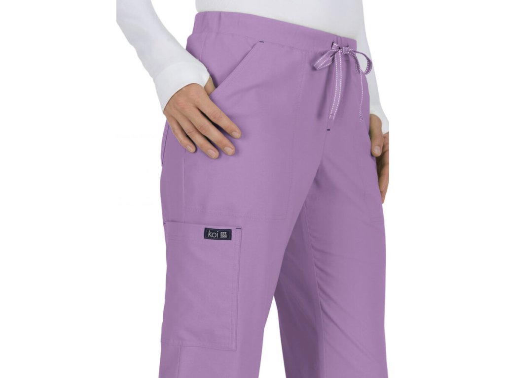 Dámske nohavice značky KOI sú vďaka perfektnému vypracovaniu odporúčané samotnými zdravotníkmi. Nohavice majú elastický pás a sťahovaciu šnúrku na dotiahnutie. Oceníte ľahký materiál, ktorý odvádza vlhkosť a niekoľko praktických vreciek. Dve predné, dve zadné vrecká a štyri bočné vrecká vrátane skrytého vrecúška na mobil. Pohodlné nosenie Vám zabezpečí príjemný materiál a rozparky v spodnej časti nohavíc.