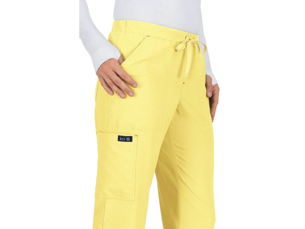 Dámske nohavice značky KOI sú vďaka perfektnému vypracovaniu odporúčané samotnými zdravotníkmi. Nohavice majú elastický pás a sťahovaciu šnúrku na dotiahnutie. Oceníte ľahký materiál, ktorý odvádza vlhkosť a niekoľko praktických vreciek. Dve predné, dve zadné vrecká a štyri bočné vrecká vrátane skrytého vrecúška na mobil. Pohodlné nosenie Vám zabezpečí príjemný materiál a rozparky v spodnej časti nohavíc.