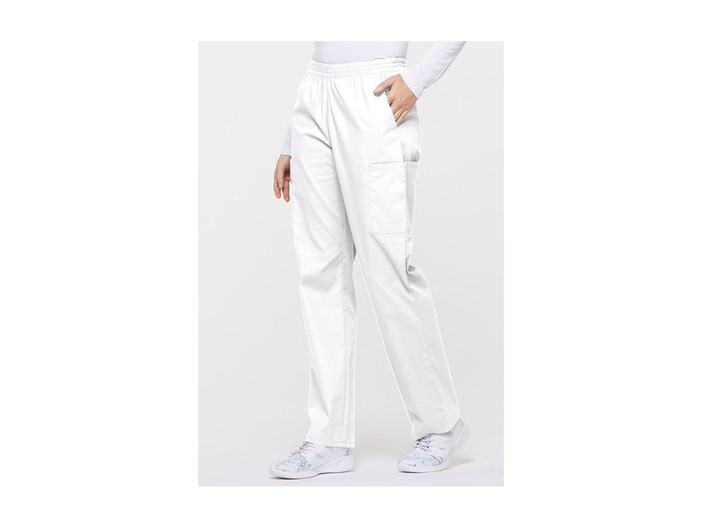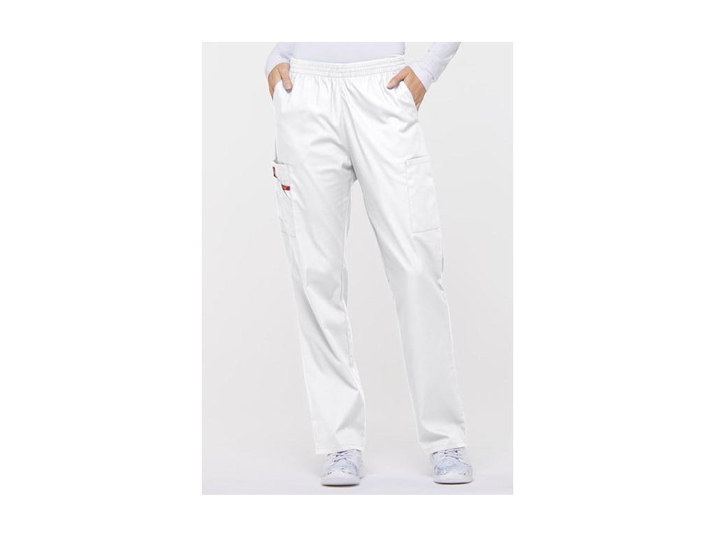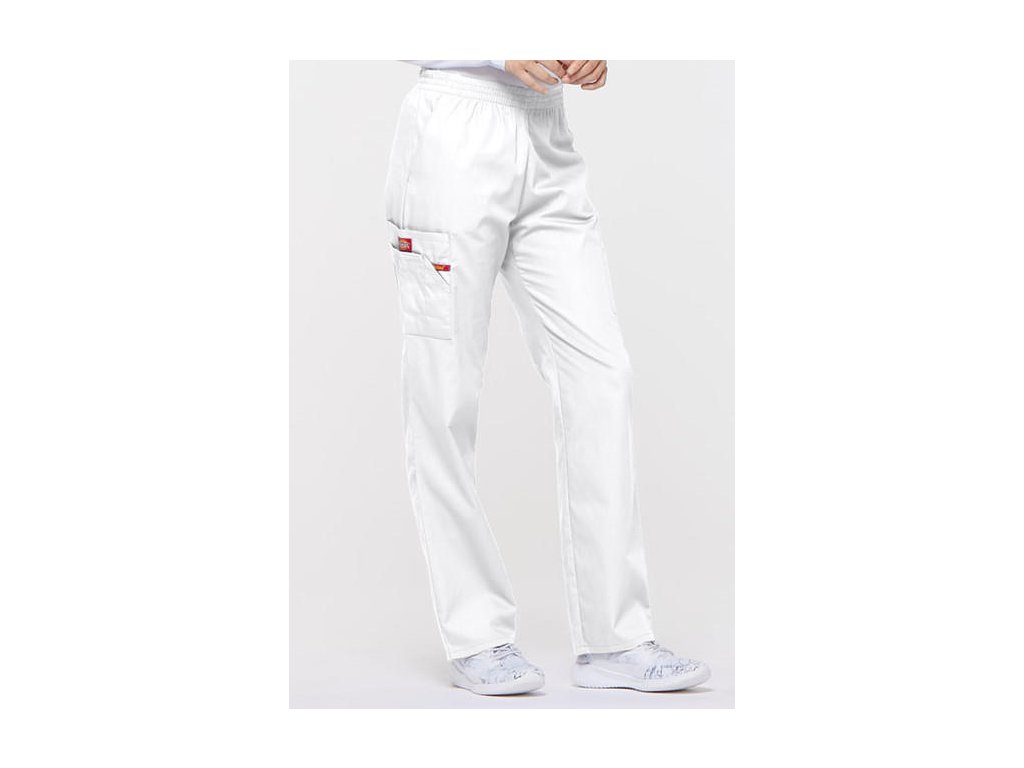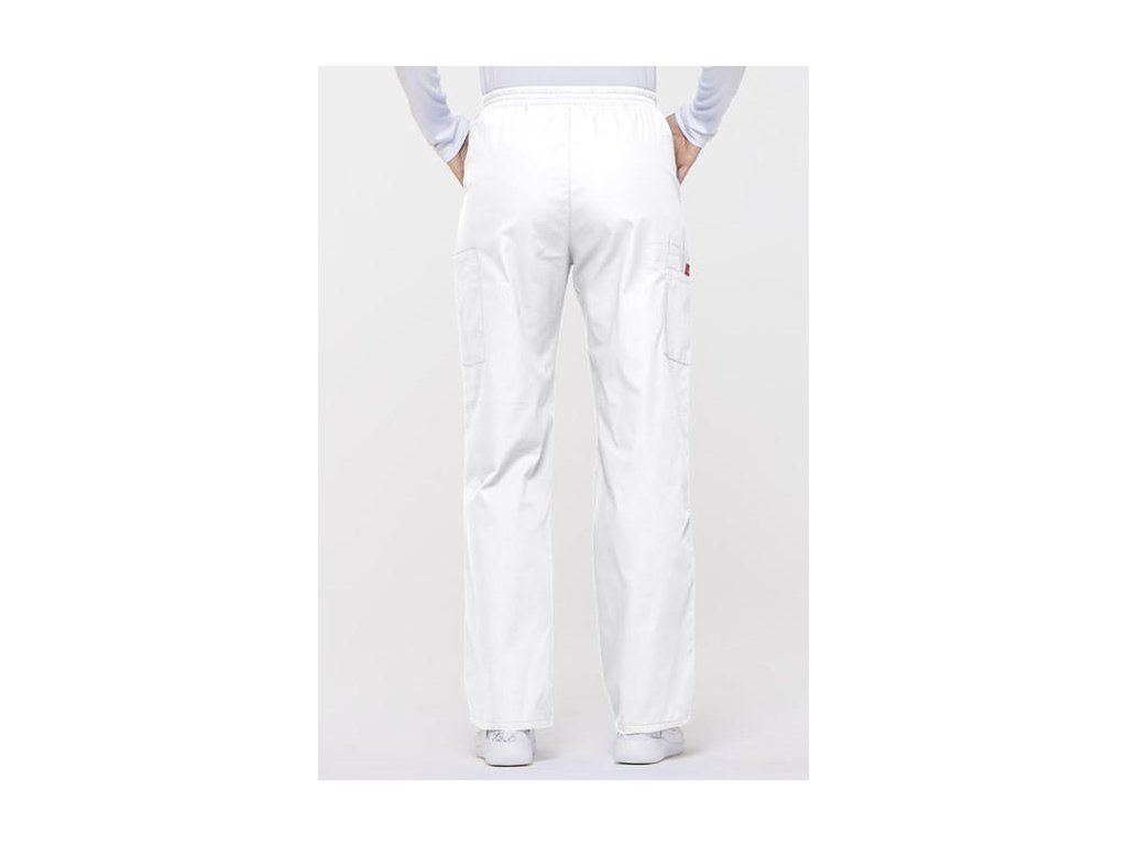 Dámske nohavice značky Dickies 86106 klasického strihu s gumou v páse a zvýšeným pásom (najmä v krížovej časti). Zdravotnícke nohavice je možné doobjednať v skrátenej/predĺženej dĺžke, dokonca nadmerné veľkosti až 5XL.