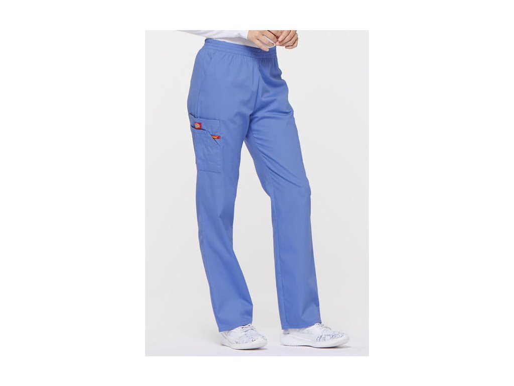Dámske nohavice značky Dickies 86106 klasického strihu s gumou v páse a zvýšeným pásom (najmä v krížovej časti). Zdravotnícke nohavice je možné doobjednať v skrátenej/predĺženej dĺžke, dokonca nadmerné veľkosti až 5XL.