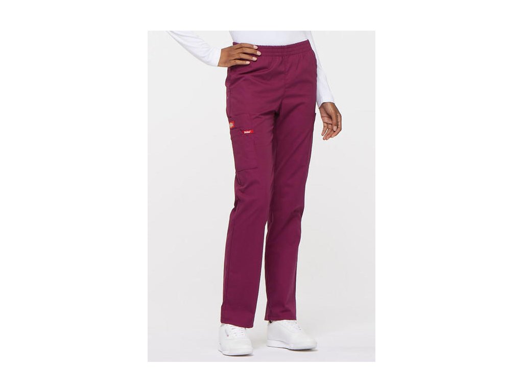 Dámske nohavice značky Dickies 86106 klasického strihu s gumou v páse a zvýšeným pásom (najmä v krížovej časti). Zdravotnícke nohavice je možné doobjednať v skrátenej/predĺženej dĺžke, dokonca nadmerné veľkosti až 5XL.