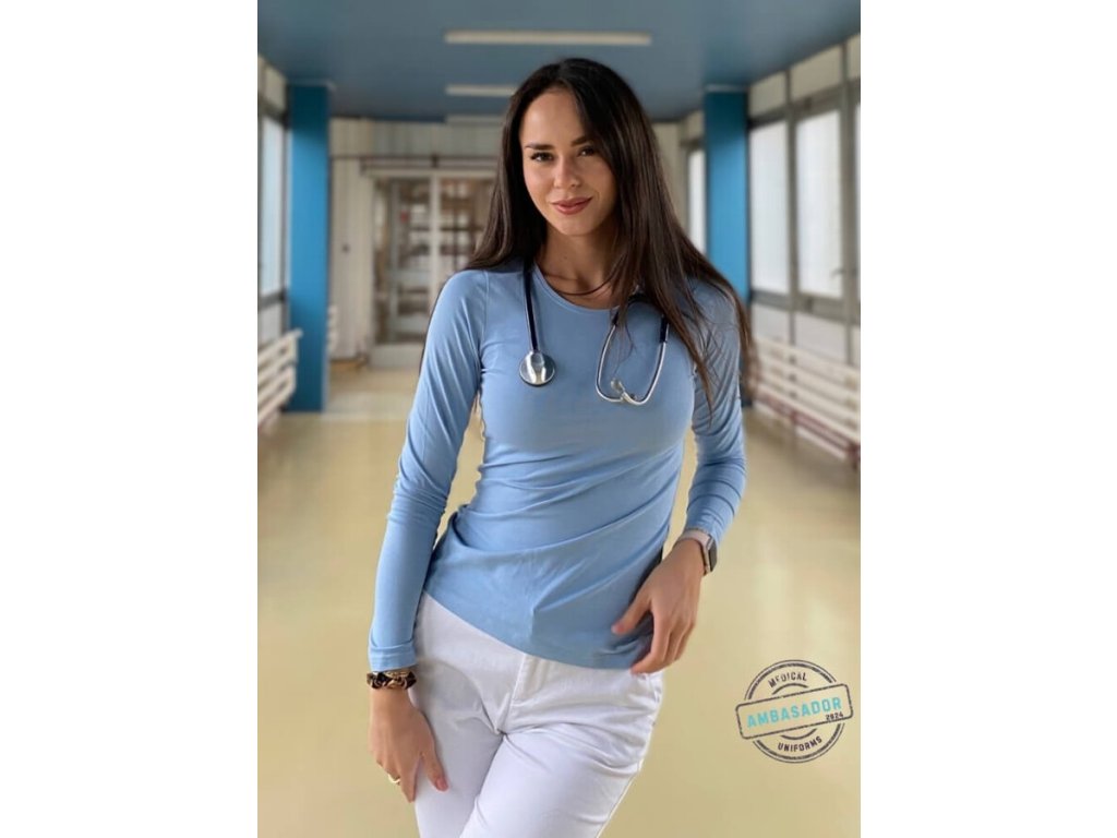 Dámske tričko s dlhým rukávom si vďaka širokej palete ponúkaných farieb jednoducho zladíte so svojim pracovným odevom. Skombinujte farby a vytvorte si premyslený set v požadovanom farebnom odtieni. Zdravotnícka blúza s lekárskymi nohavicami tak dostanú nový rozmer, ktorý môžete ľahko meniť. Profi vzhľad dovediete k dokonalosti, pokiaľ si pracovný zdravotnícky outfit zladíte aj s klinikou, ordináciou, vašim pracoviskom.