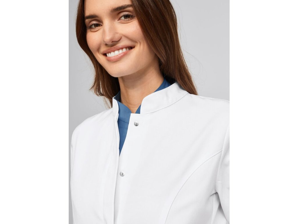 Dámsky zdravotnícky plášť značky 7days je veľmi elegantný vďaka detailom a strihu. Zapínanie na patenty urýchli Vašu prípravu na pracovnú smenu a po zapnutí sú patenty skryté pod látkou. Obliekanie a vyzliekanie je tým jednoduchšie. Plášť spĺňa požiadavky aj pre tých najnáročnejších.