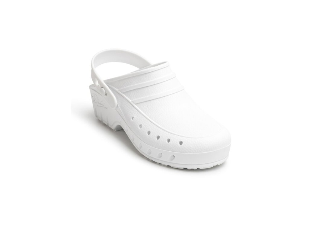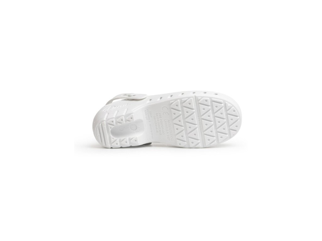 Sú vhodné pre strojové pranie a STERILIZÁCIU AŽ DO 140°C po dobu až 30 min. Táto pracovná obuv z ULTRAĽAHKÉHO MATERIÁLU má zadný nastaviteľný pásik za pätou, vďaka nemu topánku prispôsobíte na Vašu nohu. Postranné otvory umožňujú vetranie a obmedzia potenie.