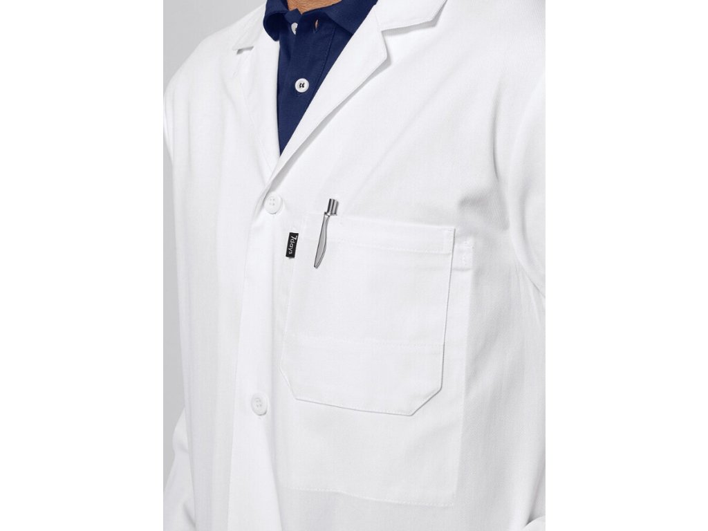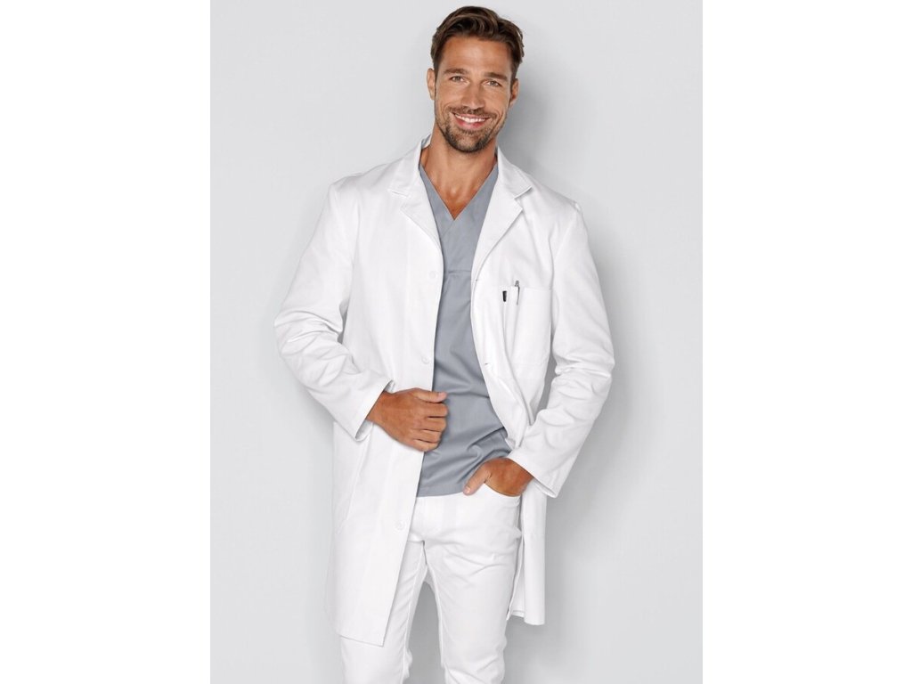 Toto zdravotnícke oblečenie má pánske klopy a štyri vrecká, z toho jedno vnútorné, sú veľmi praktické, takže lekár alebo laborant môže mať pri sebe všetko čo potrebuje. Možnosť prať až na 95°, takže ho môžete posielať do centrálnych práčovní. Ďalšou výhodou je, že sa môže sušiť v sušičke. Laboratórny plášť aj po mnohonásobnom praní si stále drží svoj tvar.