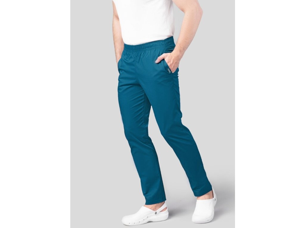 Pánske lekárske nohavice FLEX ZONE z rovnomennej kolekcie sa pýšia starostlivo zvolenými materiálmi a modernou ponukou farieb. Kombinácia 55 % bavlny, 43 % polyesteru a 2 % spandexu poskytuje nielen príjemný pocit, ale aj stálofarebnosť a minimálne krčenie. Vďaka týmto vlastnostiam zostáva pracovné oblečenie Flex Zone svieže aj po dlhých hodinách nosenia. Prítomnosť spandexu vám poskytuje voľnosť pohybu a prispôsobenie sa tvaru tela.