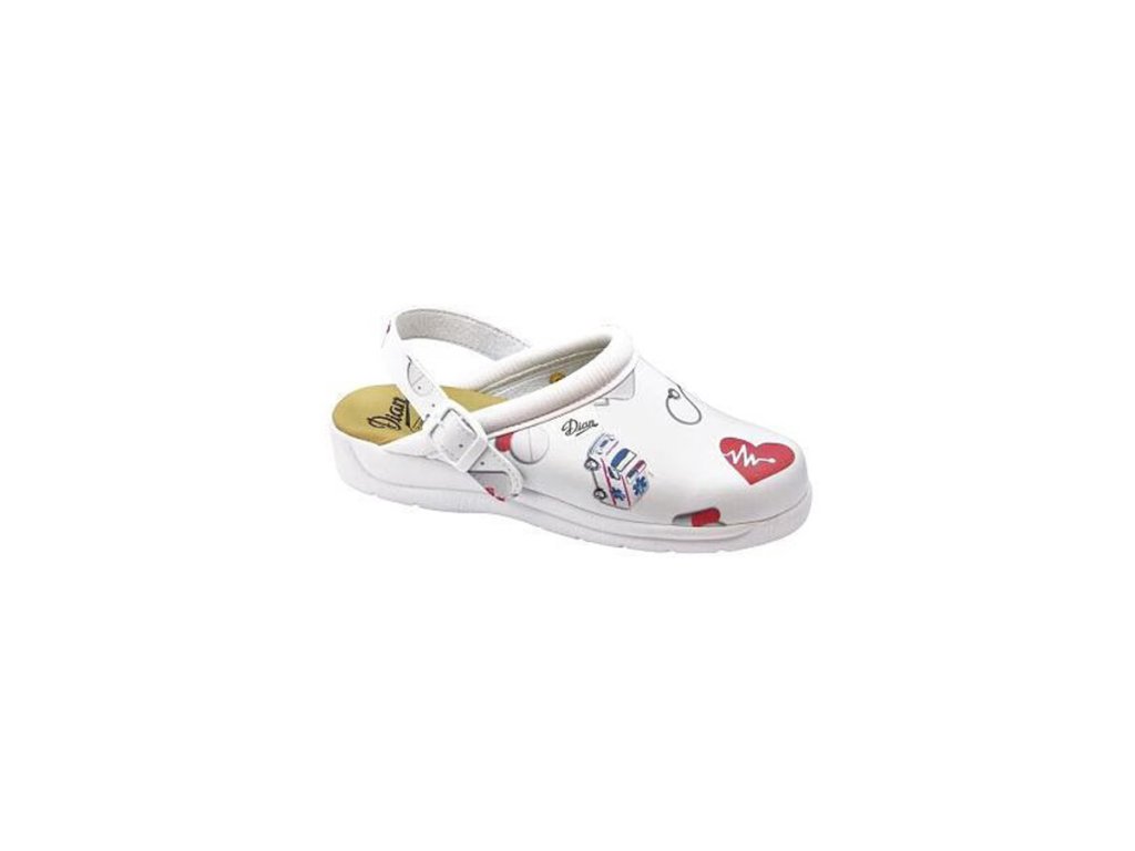 Pracovná obuv značky Dian je navrhnutá tak, aby Vám zabezpečila pohodlie na dlhých pracovných zmenách. Tieto pracovné topánky PISA ESTAMPLO s potlačou (teplomer, fonendoskopy, srdce, injekčná striekačka, lieky,..) sú ideálnou voľbou do ordinácií, ambulancií, pre lekárov, zdravotné sestry aj pre ostatný zdravotnícky personál. Pohodlie a kvalitu ocení aj personál v domovoch sociálnych služieb alebo v lekárňach a laboratóriách. Pracovná obuv s lekárskou potlačou je dostupná už od veľkosti 38-47.