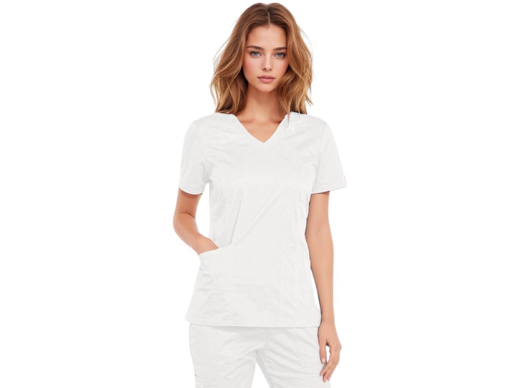 Táto dámska zdravotnícka blúza s V výstrihom v bielej farbe je navrhnutá tak, aby ste sa počas každej služby cítili komfortne, sebavedomo a zároveň pôsobili profesionálne. Ideálna voľba pre ženy v zdravotníctve, ktoré chcú spojiť funkčnosť, štýl a voľnosť pohybu.