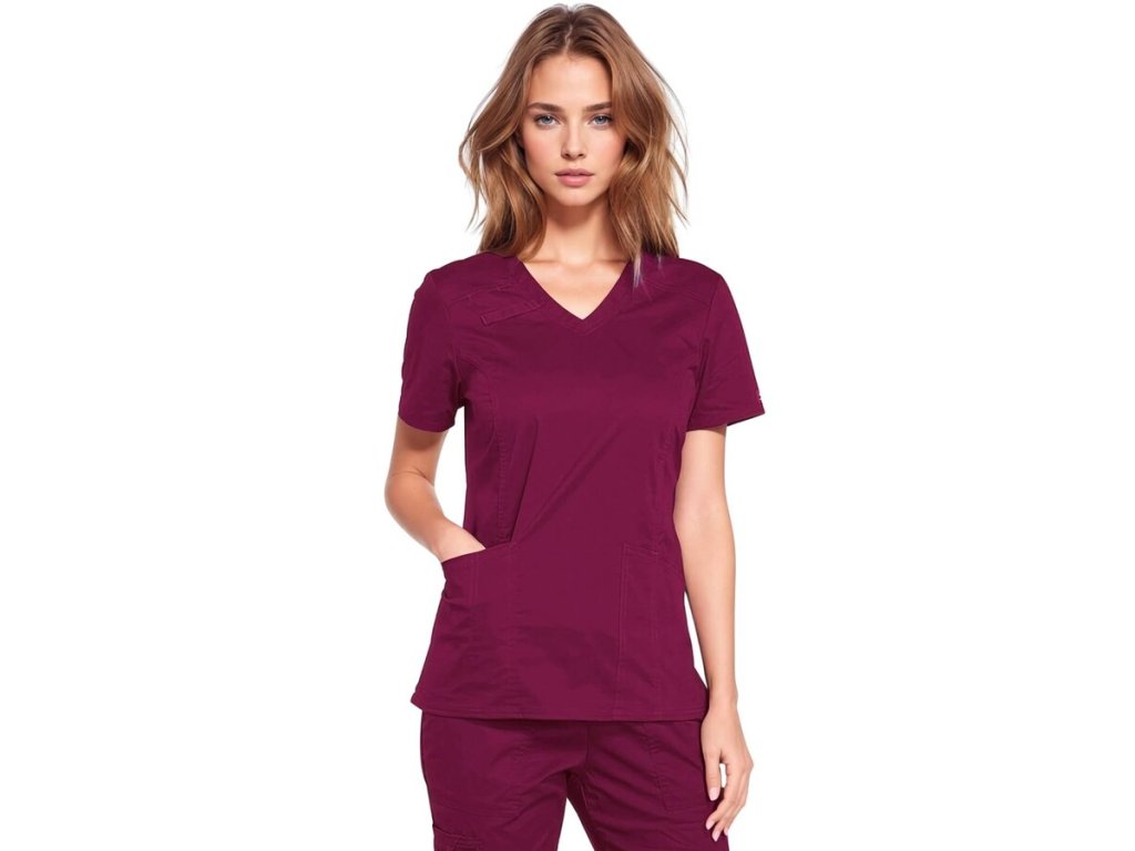 Táto dámska zdravotnícka blúza s V výstrihom vo vínovej farbe je navrhnutá tak, aby ste sa počas každej služby cítili komfortne, sebavedomo a zároveň pôsobili profesionálne. Ideálna voľba pre ženy v zdravotníctve, ktoré chcú spojiť funkčnosť, štýl a voľnosť pohybu.