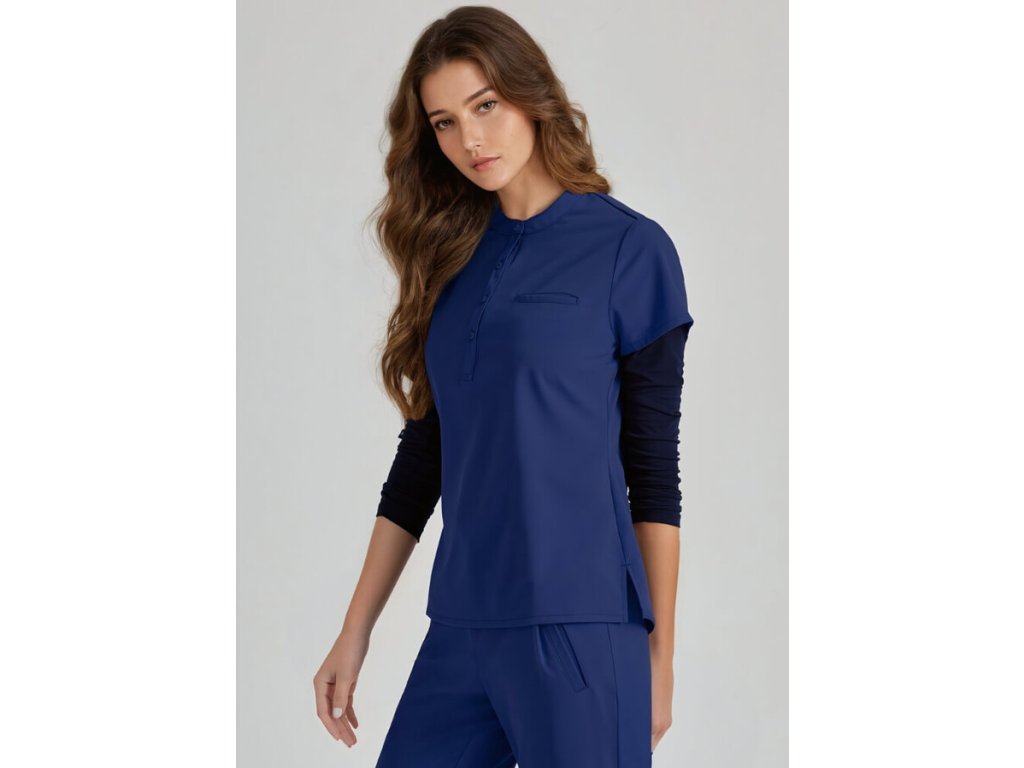 Dámska zdravotnícka košeľa MISSION reprezentuje štýlovú edíciu Barco Unify. Táto kolekcia sa vyznačuje vysokým štýlom, kvalitou a veľmi príjemnými materiálmi. Táto košeľa vám zaručuje veľmi príjemný pocit, zvýšené sebavedomie, pružnosť do 4 strán, priedušnosť a sľubuje nemačkavý materiál. Oblečiete si príjemnú kombináciu materiálov (71 % polyester, 24 % umely hodváb a 5 % elastan). Blúzka pre modernú zdravotnú sestru má moderný pohodlný strih, náprsné vrecko, okrúhly výstrih a gombíky pri krku.