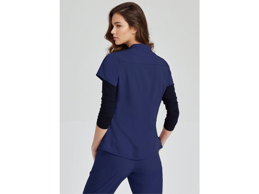 Vďaka kombinácii vlákna z umelého hodvábu a elastanu je odev mäkký na dotyk, pružný a pohodlný na nosenie. To je dôležité najmä pre zdravotníkov, ktorí trávia dlhé hodiny na nohách. Pridaný elastan sa prispôsobí telu a zabezpečí, že táto zdravotnícka košeľa dobre padne.