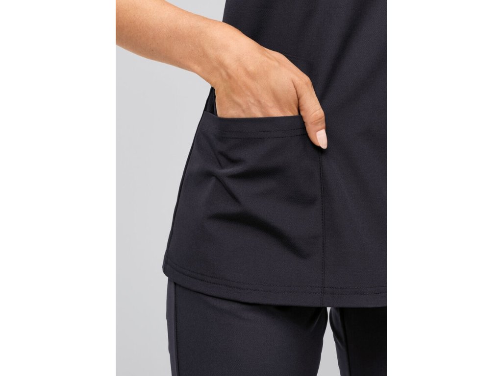 Oceníte komplexne navrhnutú blúzku pre všetky zdravotníčky, ktoré majú rady štýl, pohodlie a praktickosť. Precízne spracovaný pletený golier s légou a 2 gombíkmi ju odlišuje od klasickej zdravotníckej blúzy. Prepracované detaily, všité predné vrecká a zadné švy vytvárajú lichotivú siluetu. Sedlový šev, ktorý spája ramennú časť blúzky s trupom, prináša niekoľko výhod. Zvyšuje pohodlie, lepšie kopíruje tvar ramien a umožňuje väčšiu voľnosť pohybu. To je dôležité najmä pre zdravotníčky, ktoré fyzicky pracujú s pacientmi.
