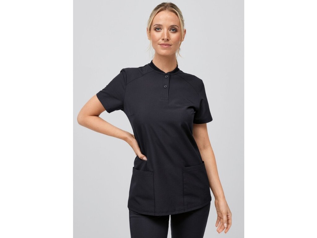 Objavte novú modernú zdravotnícku blúzku, ktorá zaujme najmä svojím neopozeraným štýlom. Poteší vás príjemný vzdušný elastický materiál (84 % polyester a 16 % elastan), ktorý odvádza vlhkosť, a strih, ktorý vytvaruje peknú postavu. Premyslené detaily, našité vrecká, gombíková léga a kvalitné spracovanie vytvárajú dokonalú uniformu do práce. Táto elegantná blúzka s nádychom športovej polokošele pozdvihne váš pracovný šatník.