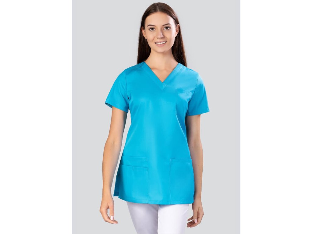 Dámska zdravotnícka blúza SELECT ponúka mierne priliehavý strih a 4 vrecká. Košeľa ponúka zmes materiálov s gramážou 165 g/m², atraktívnu a pestrú škálu farieb a praktické funkcie. Kombinácia 35% bavlny a 65% polyesteru zaistí stálofarebnosť a menšiu náchylnosť na krčenie. Vďaka rázporkom sa blúzka lepšie prispôsobí pohybom. Našité pútka môžete využiť na pripnutie ID visačky alebo na uchytenie nástrojov.