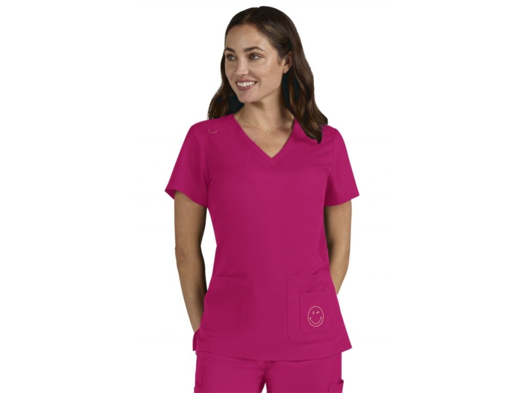 Táto zdravotnícka blúza vám vykúzli úsmev na tvári. Vznikla vďaka špeciálnej spolupráci medzi značkou koi a SmileyWorld. Stala sa obľúbenou vďaka neutrálnej a decentnej potlači smajlíka na vrecku. Ale aj vďaka kvalitnému spracovaniu, praktickým detailom aj dobre zvoleným materiálom.