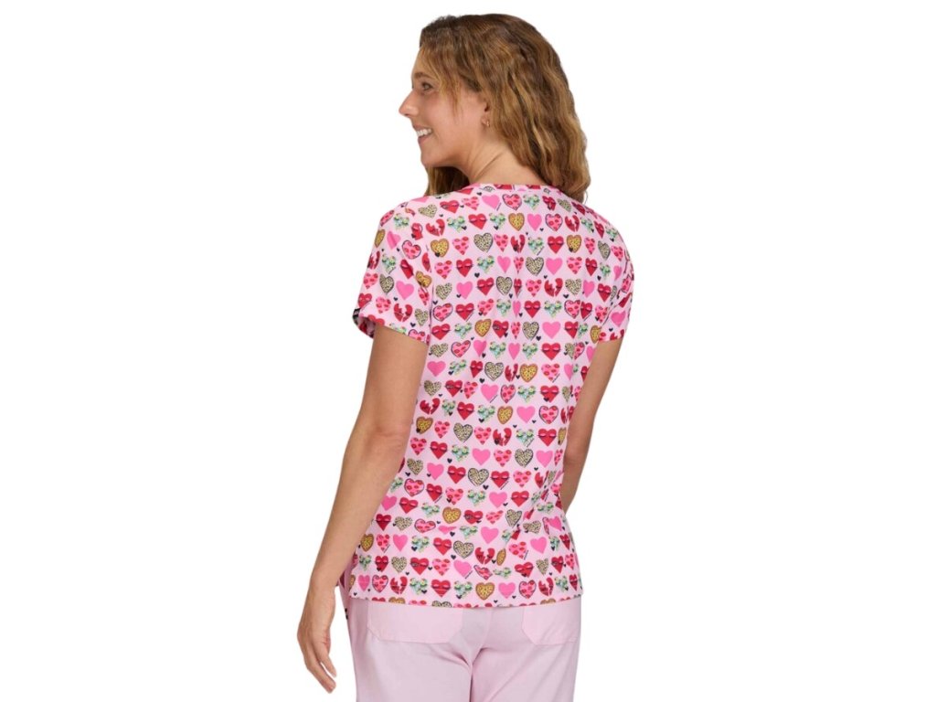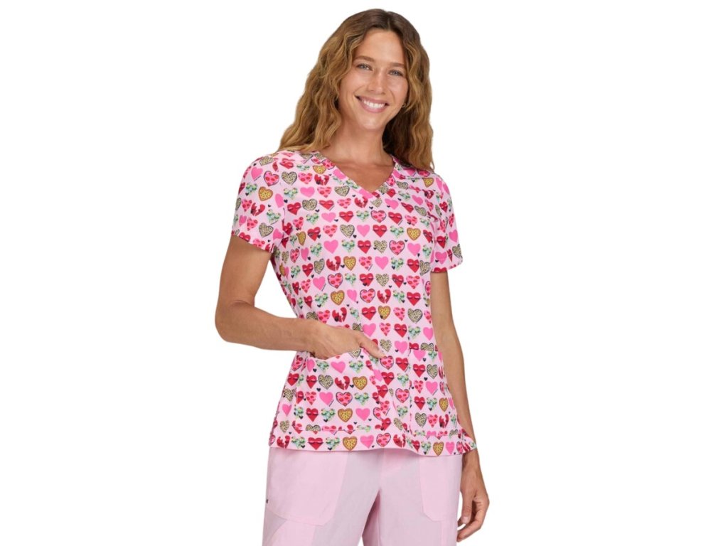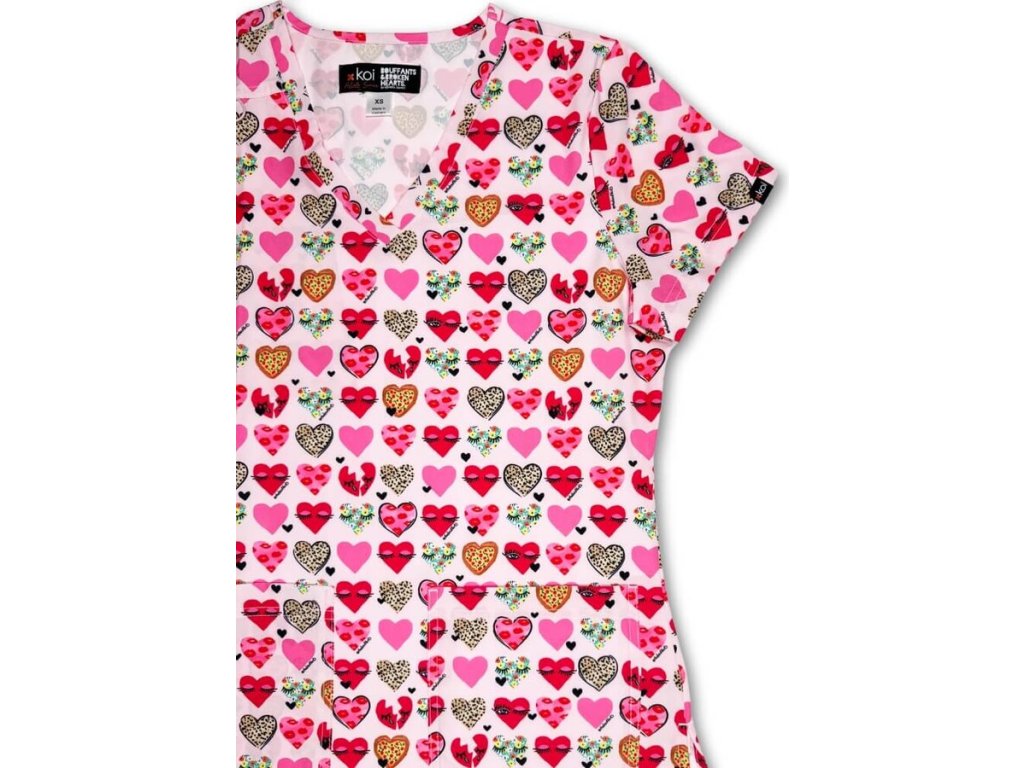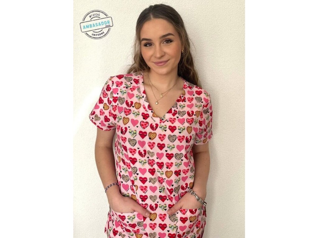 Jedna z najpredávanejších potlačí SRDIEČKO sa postará o úspech. Tento motív patrí medzi NAJPREDÁVANEJŠIE POTLAČE na našom e-shope. Zabezpečí pozdvihnutie nálady v zdravotníctve. Rozveseľte pacientov a inšpirujte svojich kolegov touto krásnou halenou od Koi. Odmení vás úsmevami a lichotivým moderným strihom.
