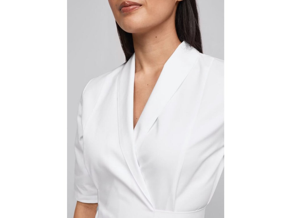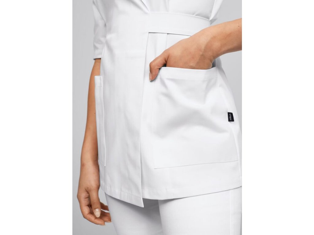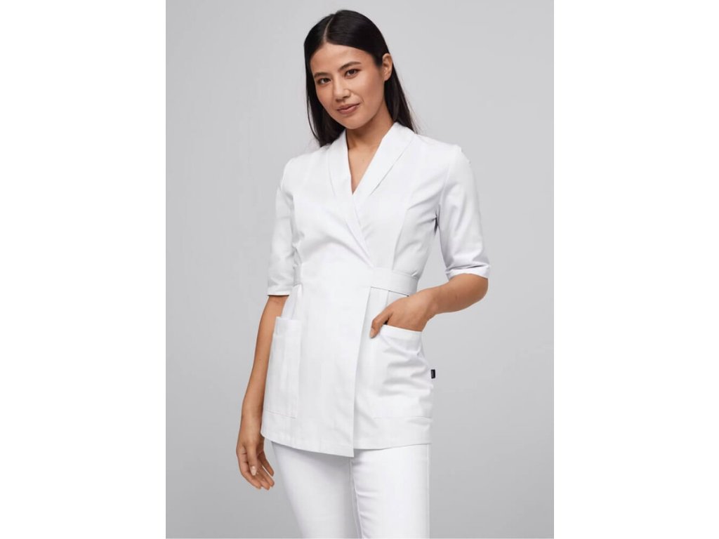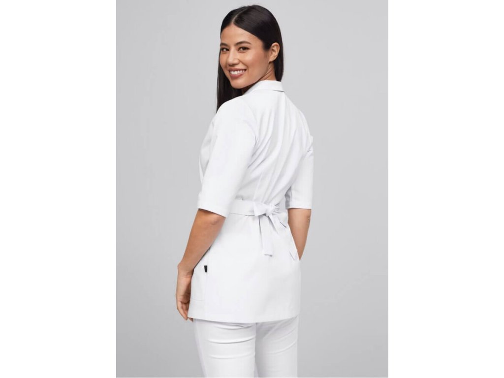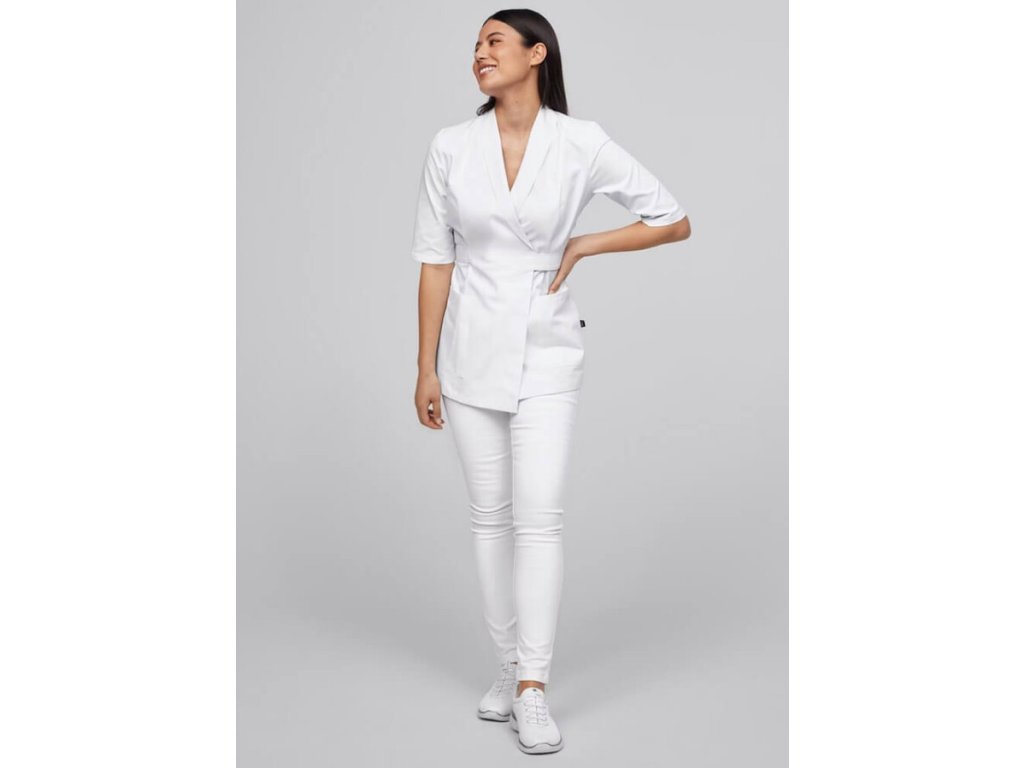Biela zdravotnícka tunika vás zavinie do prémiovej uniformy, ktorá dodá sebavedomie a profesionalitu. Objavte dokonalý look, múdro spracovaný zavinovací strih, ktorý zaistí, že táto zdravotnícka blúza padne na každú postavu.