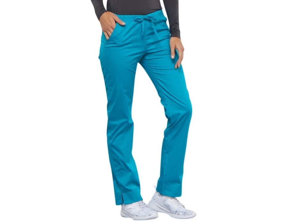 Dámske zdravotnícke nohavice značky CHEROKEE 4203 sú vhodné nie len pre zdravotníkov. Nohavice majú v spodnej časti rozparky takže sa bude cítiť pohodlne. Sú ušité z kvalitného materiálu s podielom elastanu takže sa prispôsobia postave. Zdravotnícke nohavice majú dve predné vrecká a jedno zadné vrecko. Sú úzkeho (slim) strihu s nastaviteľnou šnúrkou a pružným pásom po boku nohavíc.